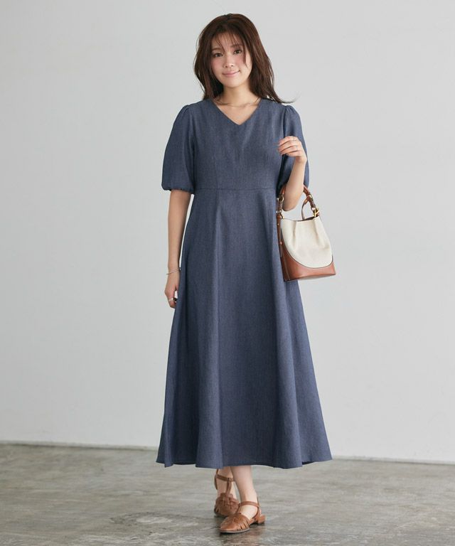 ラクなのにきちんと見えする“シャンブレーパフスリーブワンピース”