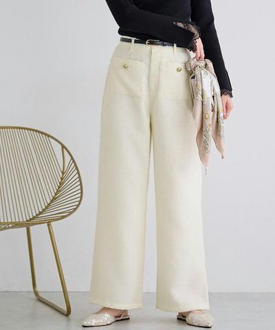 トレンドスタイルに導く“ボタンデザインラメツイードワイドパンツ”