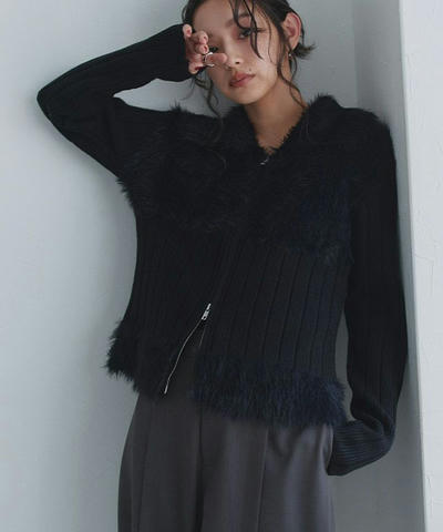 異素材ドッキングが目を惹く"フェザードッキングジップニット"