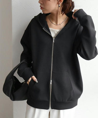 ゆったりとしたオーバーシルエットが今っぽいダブルジップパーカー。大きめのフードがアクセントになり、小顔効果も◎YKK製のダブルジップなので、開け方次第で抜け感やシルエットのアレンジが可能です。着回しやすく、デイリーに活躍する頼れる一枚です。
