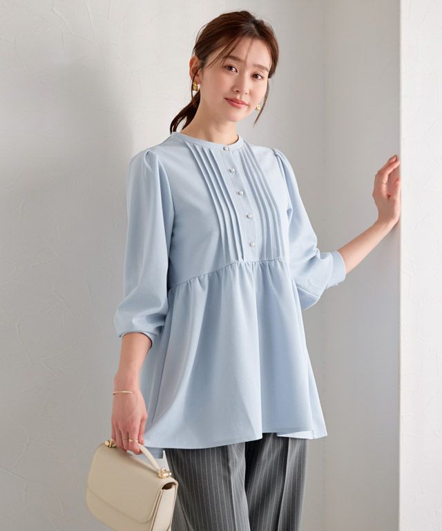一枚目で着映える“ピンタックパールフレアTブラウス”