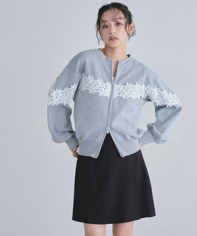 身頃にレースをドッキングした華やかさと上品さを兼ね備えたデザイン。ダブルジップ仕様で開け方次第で雰囲気を変えて着こなせます。ふんわりとしたパフスリーブが女性らしさを引き立て、羽織るだけでサマ見えする一枚に仕上げました。