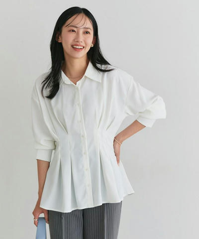 女性らしさと着映え感を演出する“とろみウエストタックブラウス”