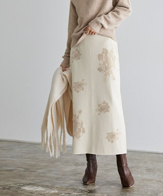 マンネリコーデにアクセント“花柄ジャカードニットスカート”