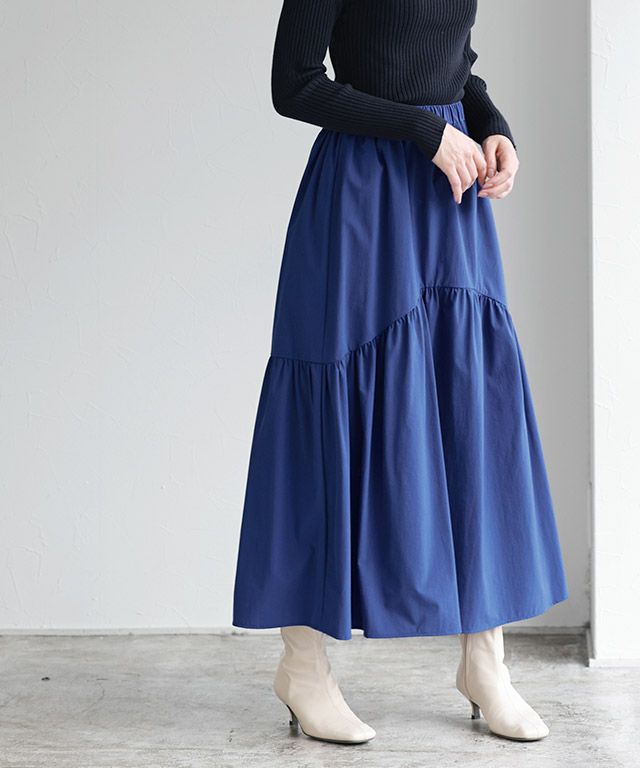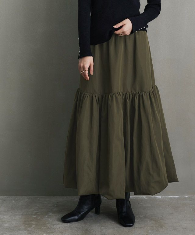 ティアードディテールがシンプルなトップスに合わせるだけで映える一枚。切り替え幅の3段目を長めにし、甘くなりすぎず大人も着やすいように仕上げました。いつものスタイリングに取り入れるだけで旬な印象に◎