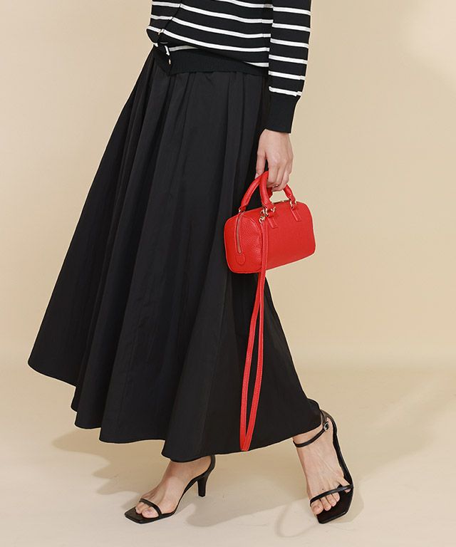 程良いツヤ感とハリ感のあるタフタ素材を使用。ふんわりとしたきれいなシルエットをキープしてくれます。少しシワ感もあり表情をプラスしてくれます。