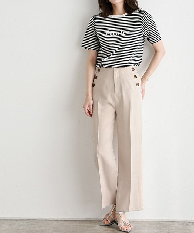 サイドに施したボタンがマリンな印象に◎切り替えでライン風に見せたディテールが程よいスタイリングのアクセントになり、こなれた雰囲気に仕上げてくれます。