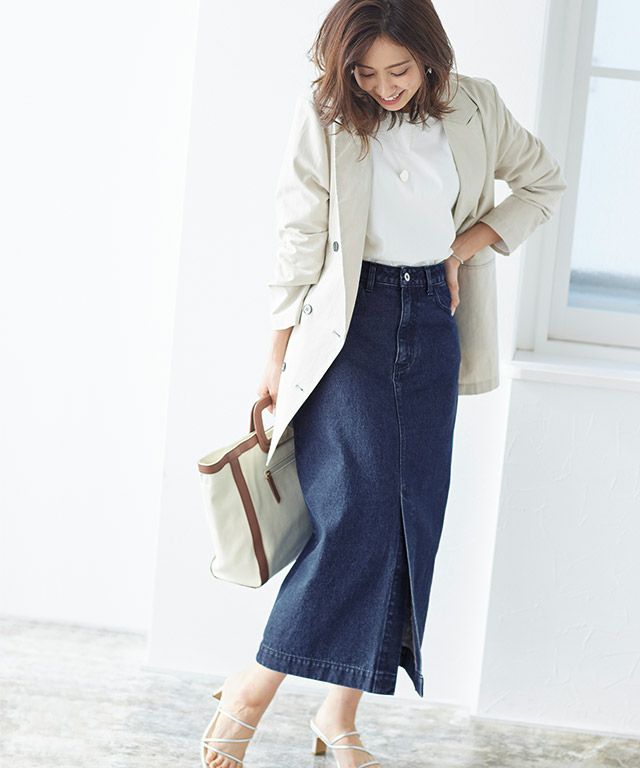 大人の抜け感を演出する“フロントスリットデニムスカート”