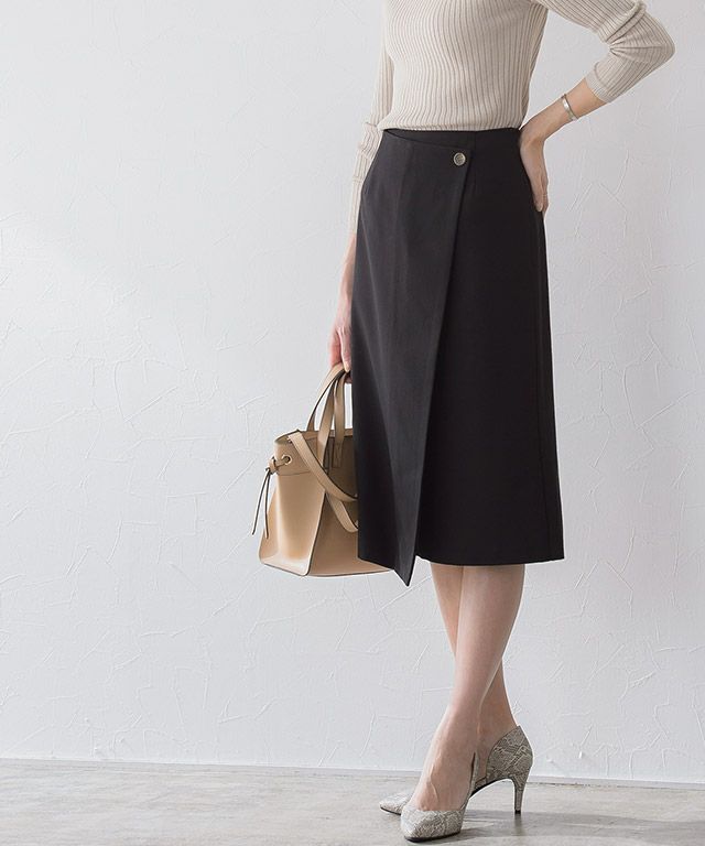 大人っぽいすっきりとしたシルエット“ラップ風Iラインスカート”