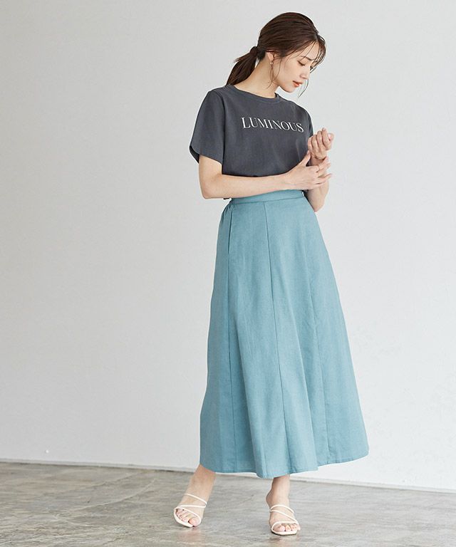 程よいハリ感と軽い風合いが魅力のロングスカート。涼し気なリネン混素材でシーズンムードを高める一枚です。裏地付きなので安心して着用できます。