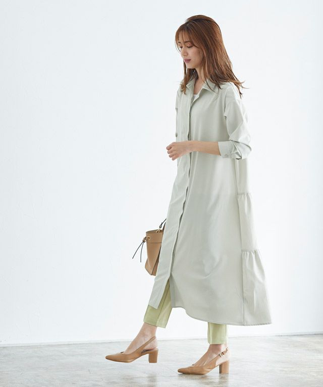 シアー素材にすることでロング丈でも軽やかな印象のシャツワンピース。サイドスリットが抜け感をプラスしてくれます。前を閉じればロングトップスとして、開けば軽い羽織りとしても着用できます◎