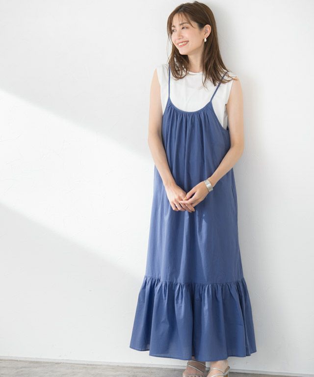 胸元のギャザーと裾の切り替えがフェミニンさ漂うキャミワンピース。ふんわり広がるシルエットが体型カバーも叶えます。肩紐はアジャスターで調節可能なのも嬉しいポイント◎インナー次第で雰囲気が変えられる着回しが効くアイテムです。