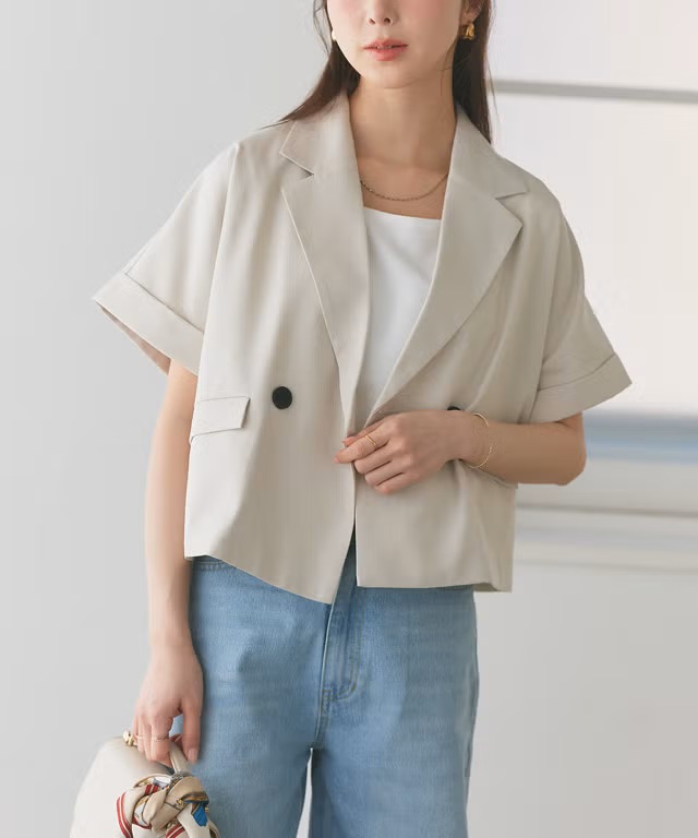 ワンプラスでこなれた装いへ導く“ハーフスリーブクロップドテーラードジャケット”