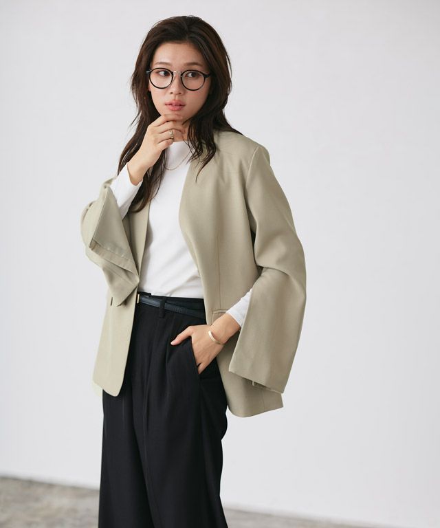 ノーカラーなので首回りがすっきりとした印象になり、ネックのあるアイテムとも相性抜群なジャケット。2wayで楽しめるスリーブで、シンプルな着用はもちろん、ファスナーを開けてインナーを見せたり、肌見せしたりと様々な着こなしができる一枚。シングルボタンできちんと感と、大人な雰囲気をプラスしつつ、トレンドライクなスタイリングにもなる優秀ジャケットに仕上げました。