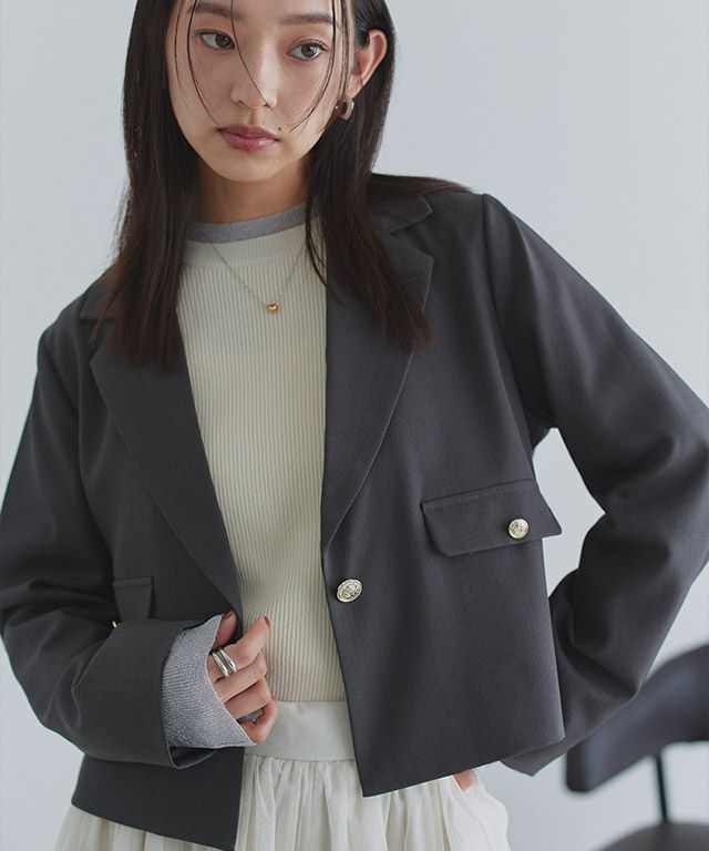 レディな印象に導くゴールドボタンクロップドジャケット