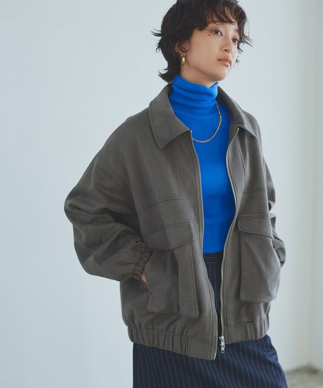 大きめのポケットに襟が特徴的でメンズライクなデザイン。ダブルジップ仕様でスタイリングの幅が広がります。