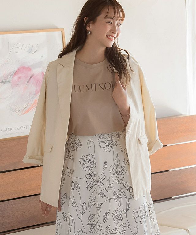 ON/OFF着回しができ、旬をプラスしてくれるダブルボタンジャケット。ゴールドボタンがスタイリングのアクセントになり、シンプルながらも上品な一枚に。