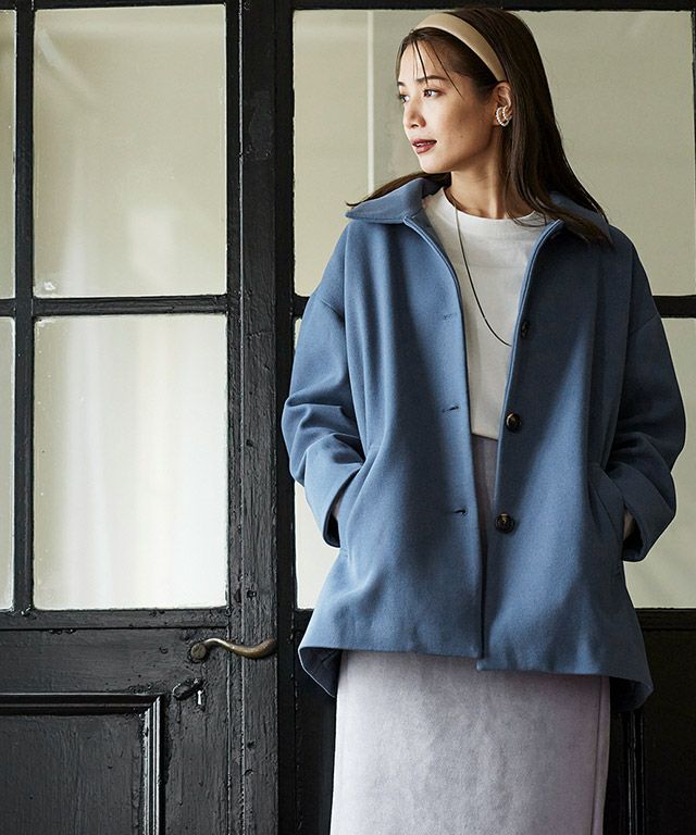 厚手で滑らかな手触りのメルトン素材を使用。重みがあり、保温性もあるので温かな着心地です◎適度にハリ感のある生地がシルエットをキープ。しっかりとした風合いが上品な印象を与え、高見えを叶えてくれます。