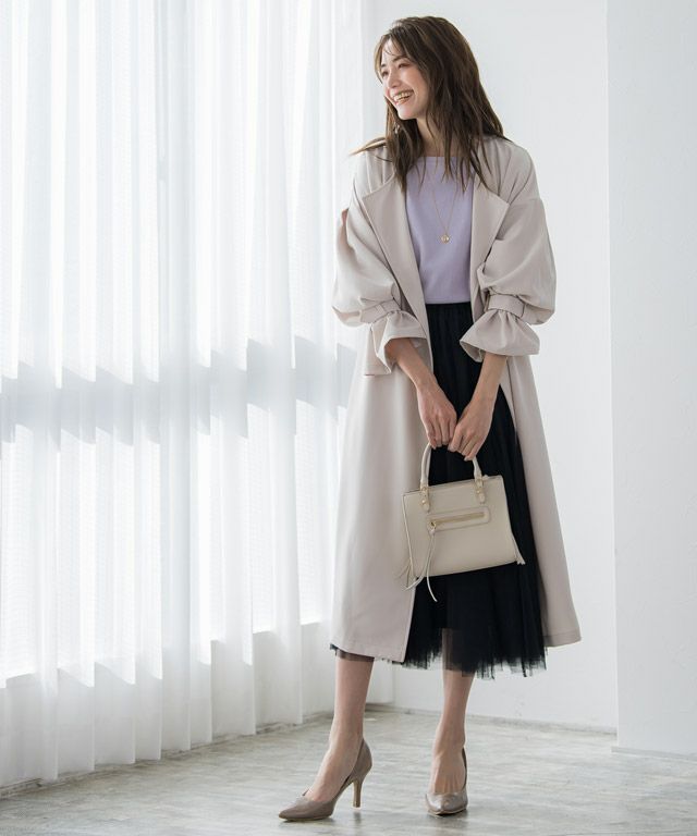 トッパーデザインが程よい抜け感を演出しながらも、きちんと感をプラス。袖口はキャンディスリーブでフェミニンな女性らしさがさりげないポイントに。
