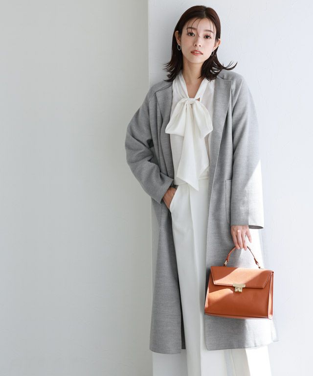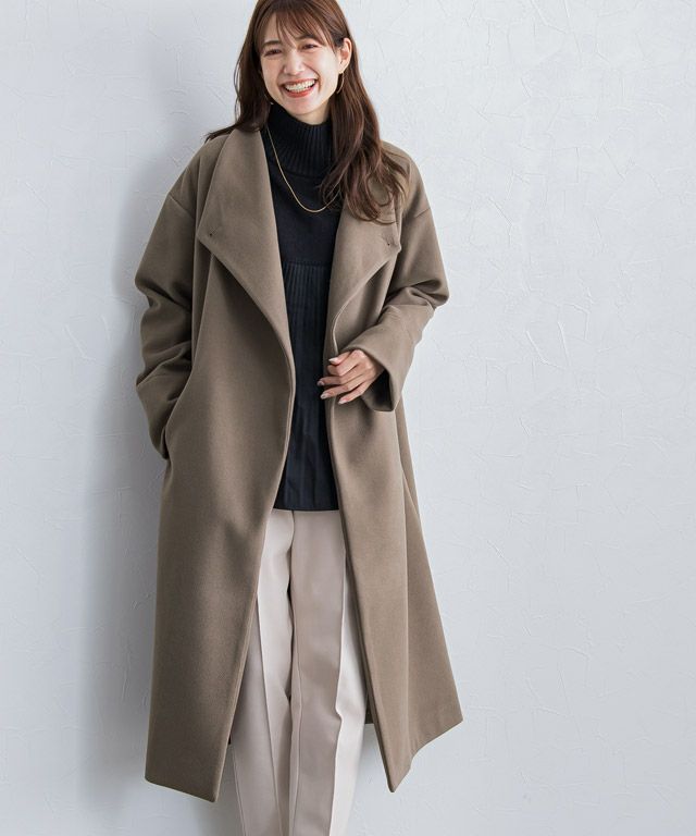 ラフに着られてこなれ感漂う“ダブルフェイスノーカラーコート”