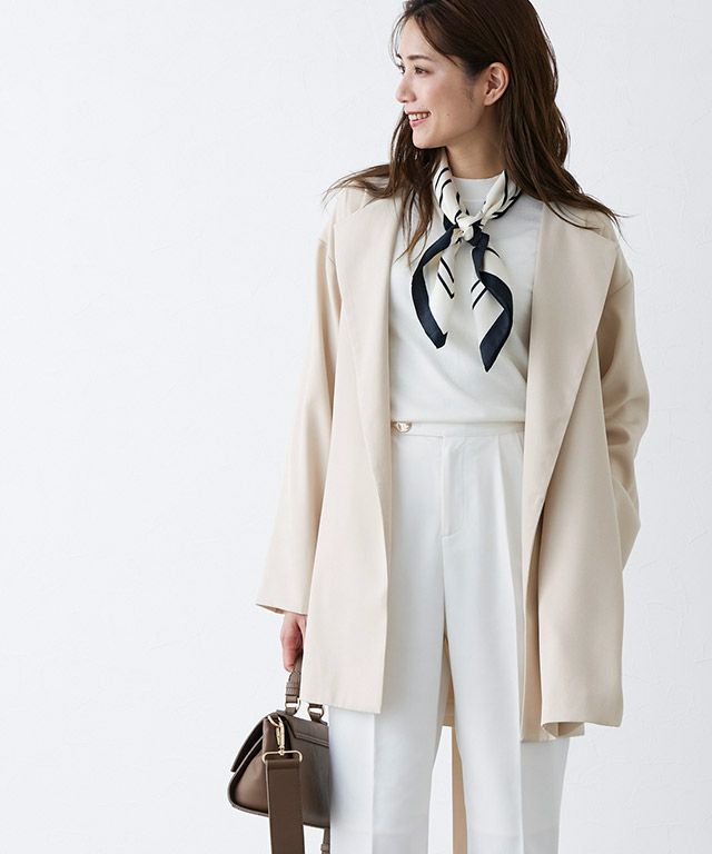 すっきりとしたノーカラーとラグランデザインがこなれ感をプラス。大きめのパッチポケットがアクセントになったデザインです。ベルト付きなので気分に合わせてスタイリングに変化を付けられるところも魅力の一つ。シンプルなデザインなので、普段使いしやすく着回し力も抜群の一枚です。