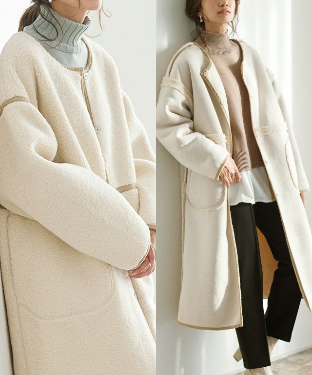 コーディネートの幅が広がる“フェイクムートンリバーシブルボアコート”