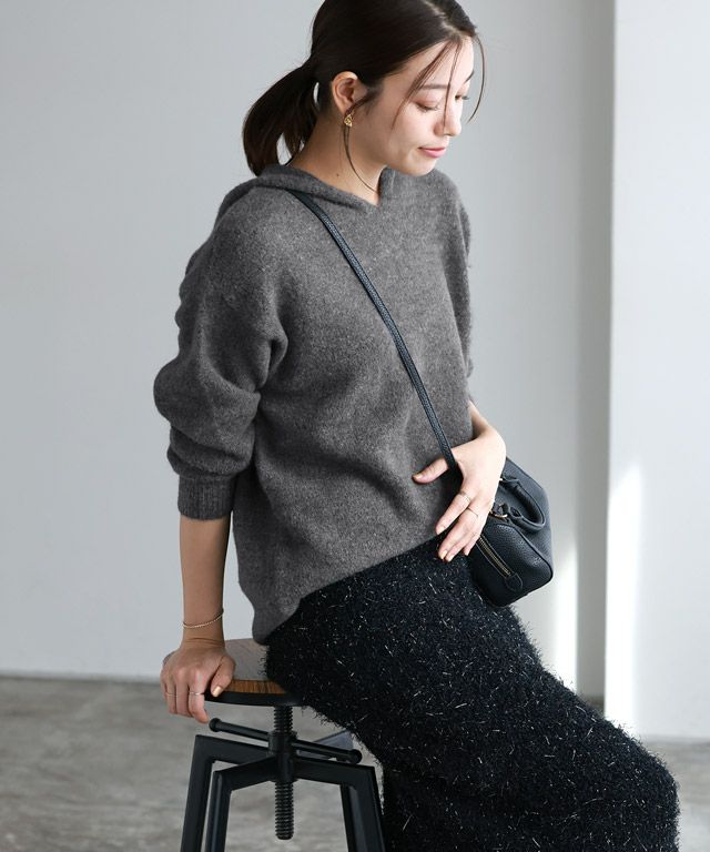 大人のこなれ感漂う“ふんわりシャギーニットフーディー”