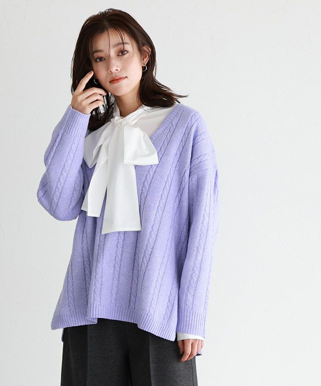 レイヤードスタイルが楽しめる“ケーブル柄深Vネックニット”