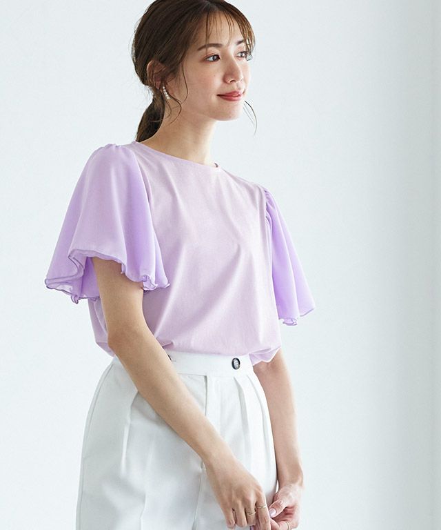 女性らしいスタイリング仕上がる“シフォンフレアスリーブカットソー”