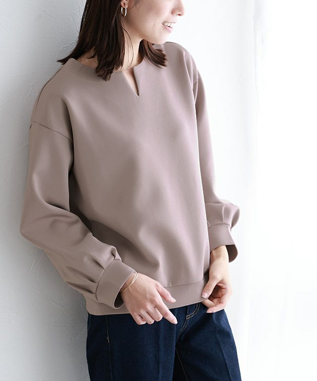 ダンボール素材が大人っぽく決まる、きれいめカジュアルなプルオーバー。シンプルながらも立体的なシルエットでこなれた大人のラフスタイルに導きます。デコルテ周りをきれいに見せてくれるキーネックデザインで抜け感をプラスします。