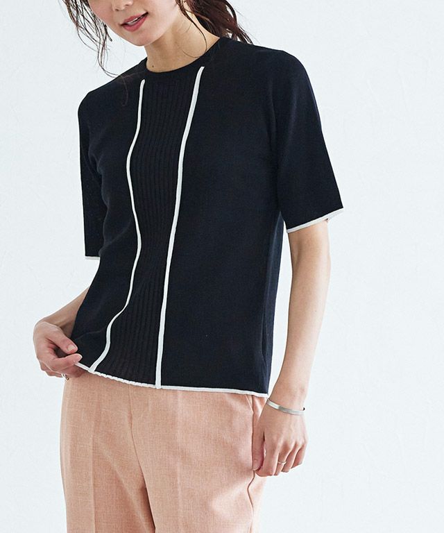さらっとした風合いで清涼感があり、夏でも着心地の良いニット素材。配色ながらもベーシックカラーを差すことで上品でこなれた印象に仕上がります。