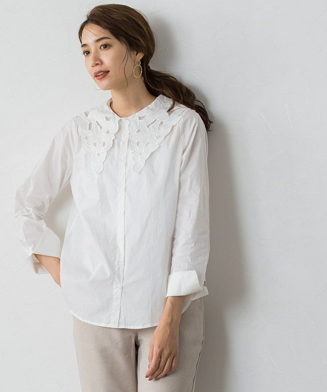 存在感のあるレース襟が顔周りを華やかに見せるブラウス。ニットやジャンスカと合わせてトレンドライクなスタイリングへと導きます。