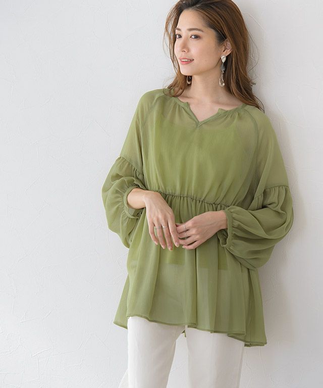 シーズンムード漂う素材感“楊柳ギャザーブラウス”