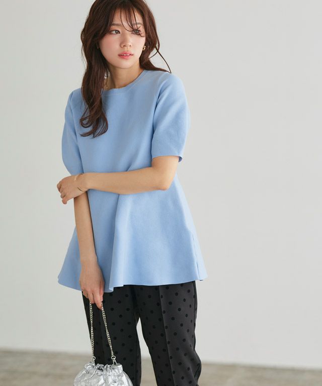 一枚で着映え感のある“構築袖ペプラムニット”