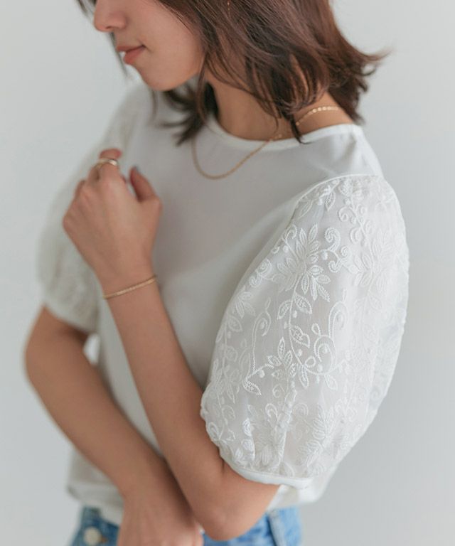 繊細なレースが目を惹く“袖チュールレースブラウス”