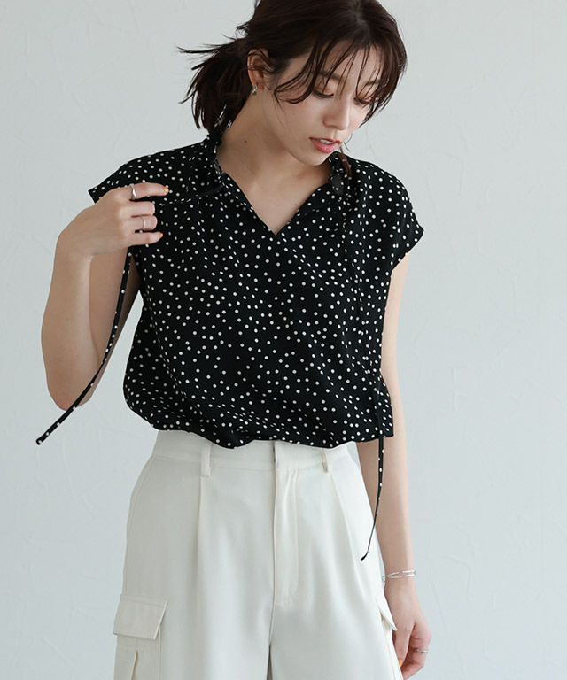 甘すぎず大人っぽく着こなせる“2wayドットフリルカラーブラウス”