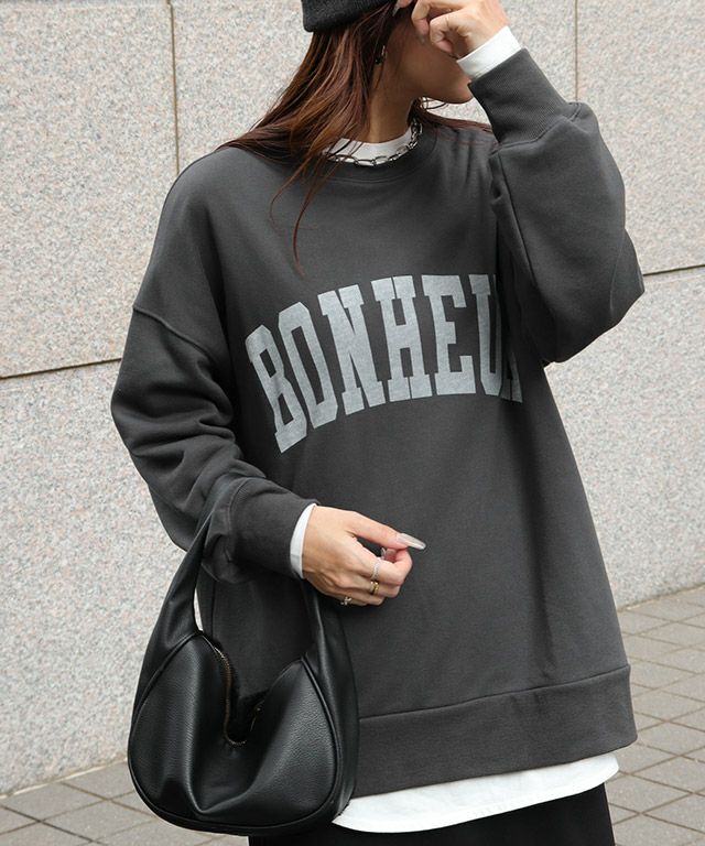 大人のこなれカジュアルを演出“オーバーサイズロゴスウェット”