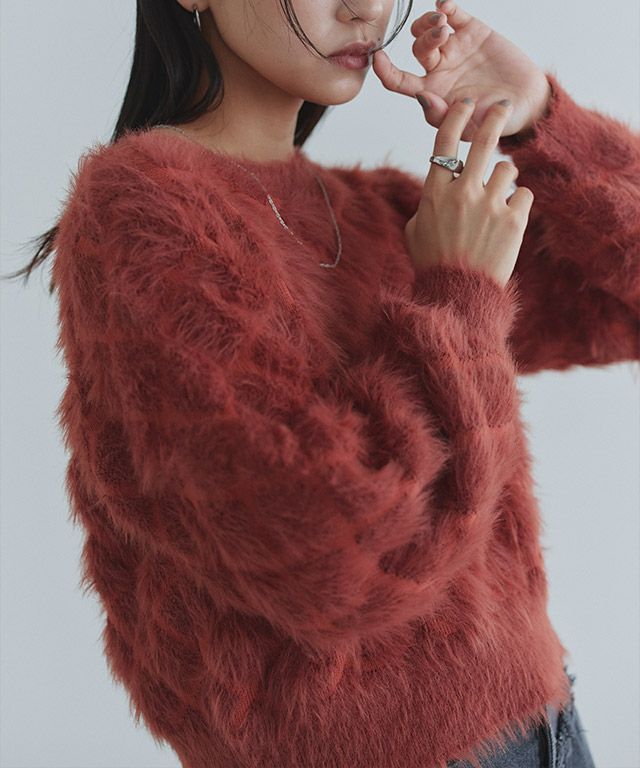 【Material】ふんわりと程よく毛足のあるモヘアライク素材を使用。着るだけでシーズン感が引き立ち、トレンドライクな印象に仕上がります。
